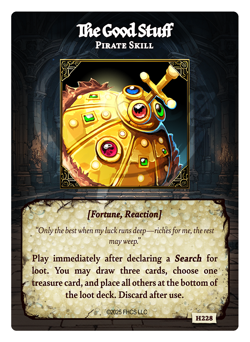 The Pirate Hero Booster introduces a brand-new advanced hero class for Advanced Armory. Sail into battle with coin-toss mechanics, Fortune & Glory skills, and loyal mates ready to plunder or perish by your side. Inside you’ll find a double-sided hero card, twelve unique skills, themed equipment, pets, and a pocket-sized rules folio—everything you need to add this swaggering adventurer to your crew.